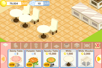 数分待つと作れるメニューが増え、チョコチップクッキーやブラウニー、フルーツタルトなどの中から好きに選べるようになります。またお金が貯まると、高級な雑貨や壁紙、床などを買って内装をリフォームできます。お店の方向性が決まったらあとは勝手に収入が上がるのを待つだけです。数時間後にまたお店をのぞいてみましょう。